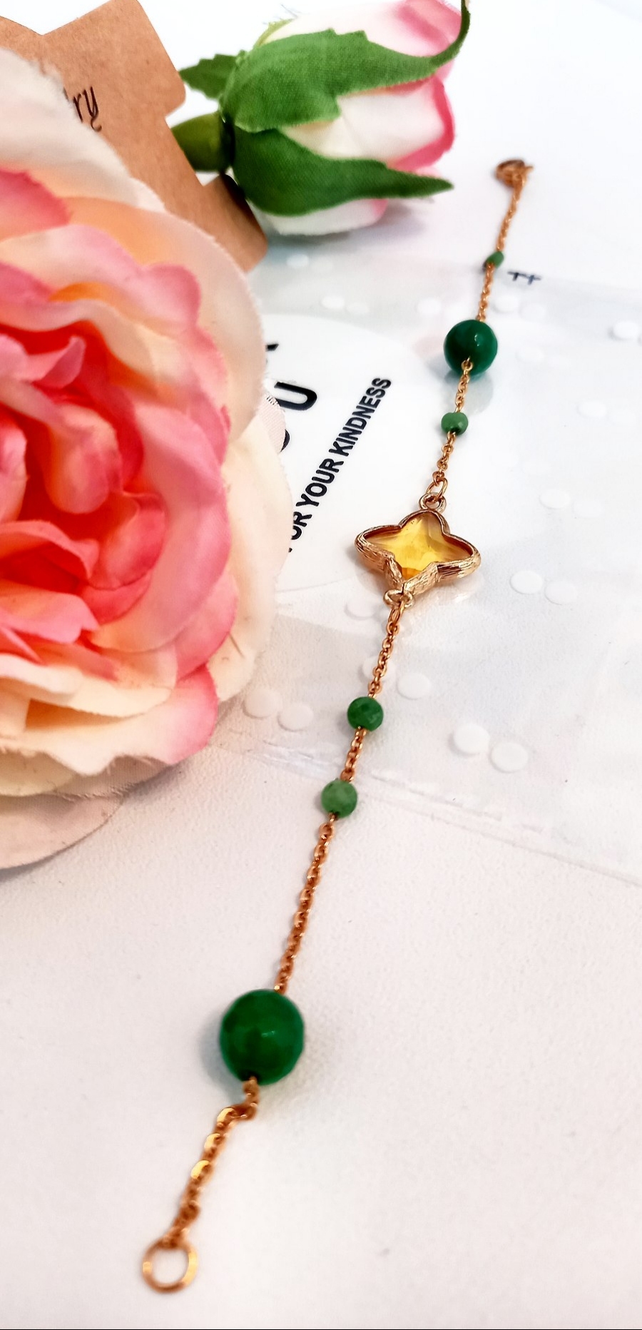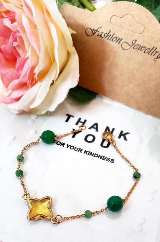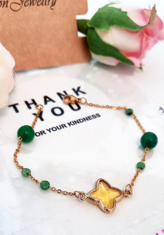 دستبند زنانه سنگ عقیق تراشخورده سبز استیل با پلاک کریستال