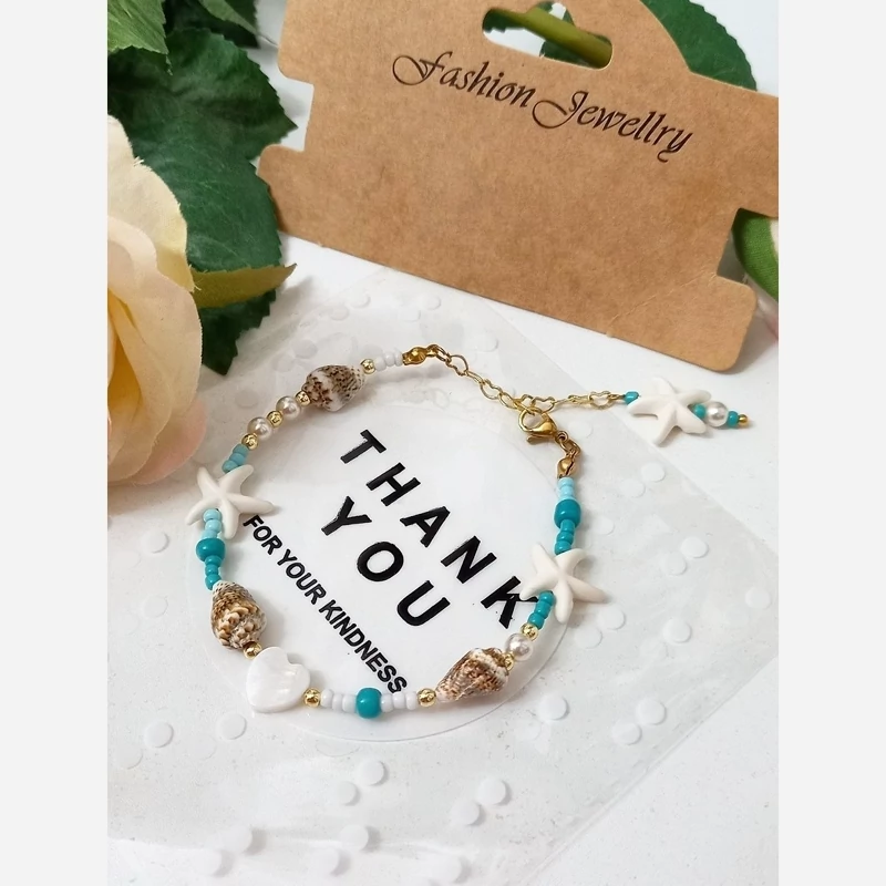 دستبند ساحلی سنگ صدف و صدف طبیعی باکیفیت استیل