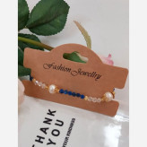 دستبند زیبای سنگ طبیعی لاجورد و مروارید پرورشی طبیعی استیل رنگ ثابت