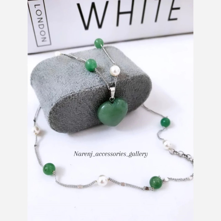 گردنبند سنگ اونتورین اصل و با کیفیت پلاک سنگی قلب اونتورین