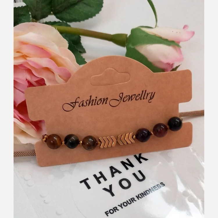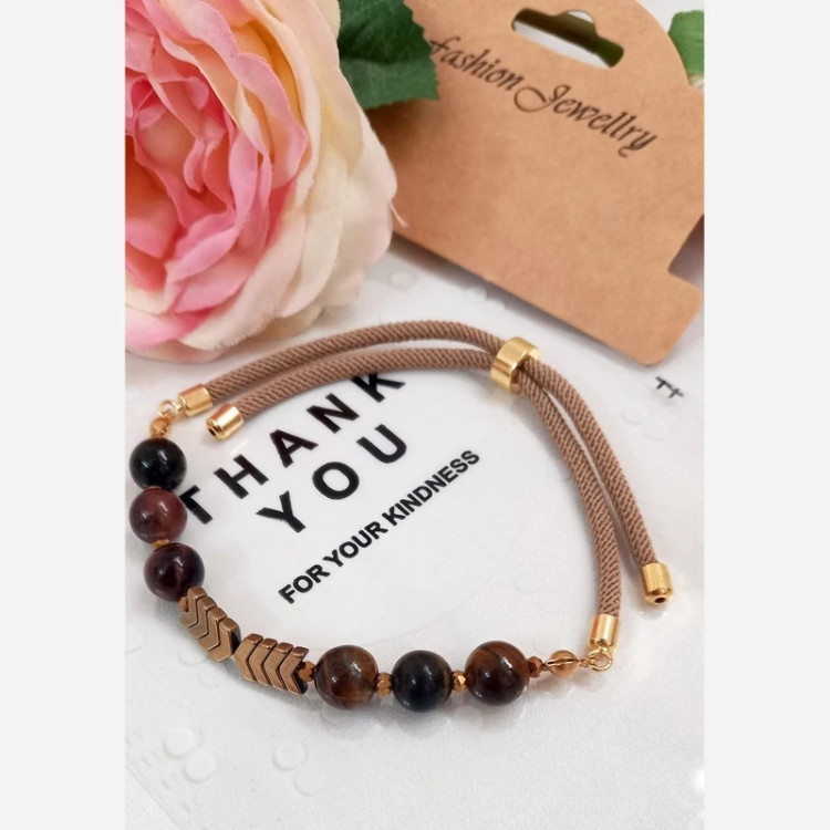 دستبند سنگ طبیعی چشم ببر با جزئیات حدید و قفل کشویی