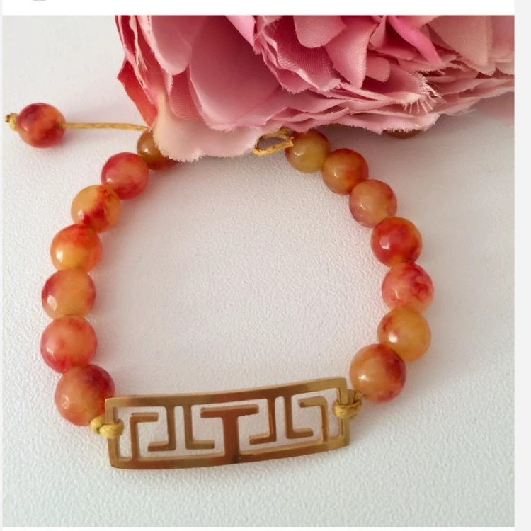 دستبند سنگ کارنلین اصل با پلاک استیل و ضدحساسیت