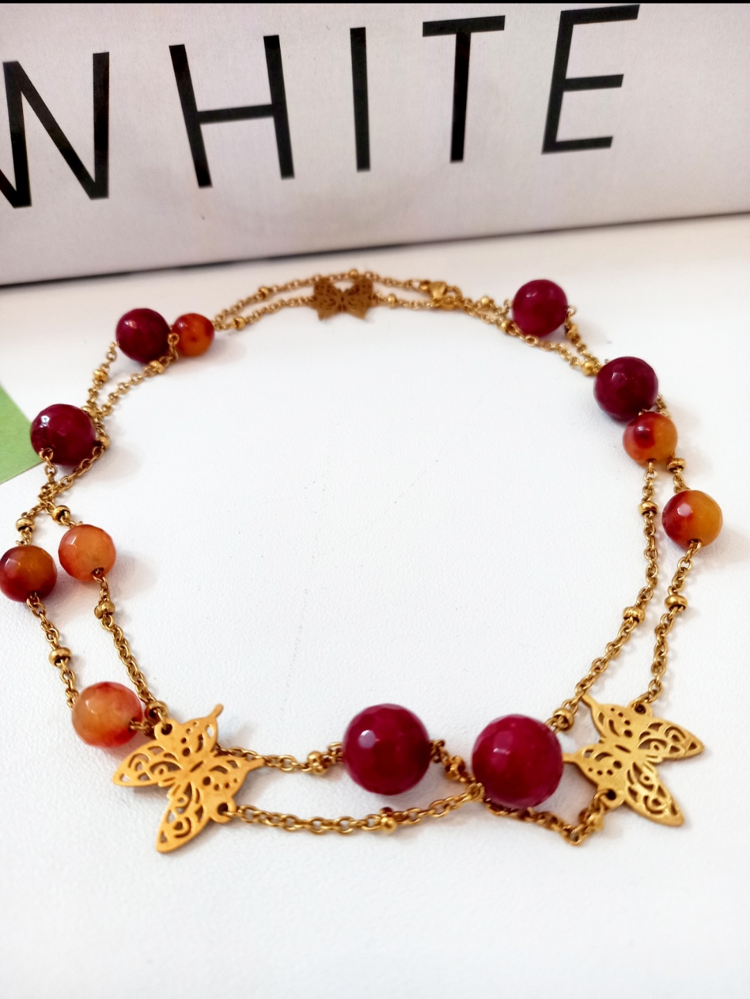 ترکیب زیبای سنگ های عقیق سرخ و کارنلین و استیل