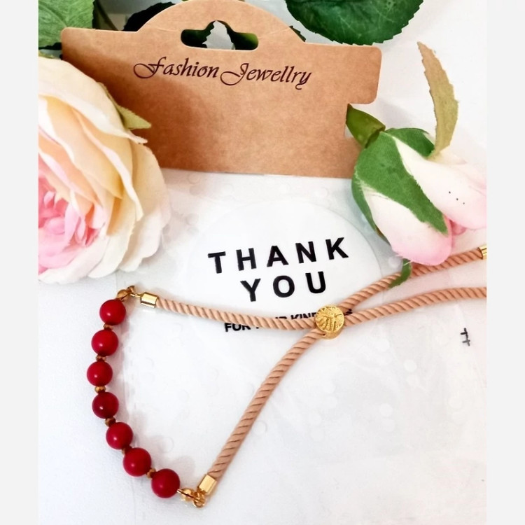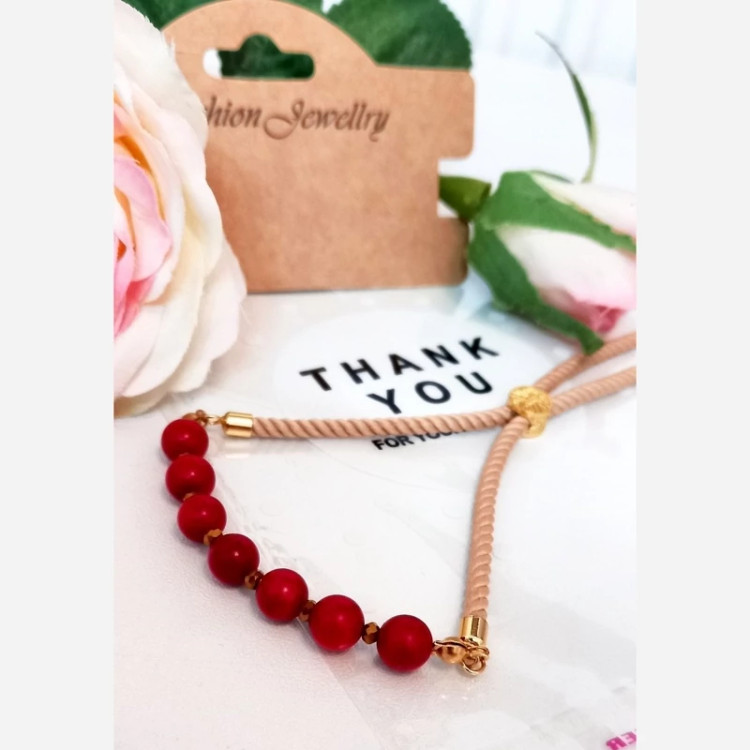 دستبند سنگ طبیعی مرجان با قفل کشویی قابل تنظیم