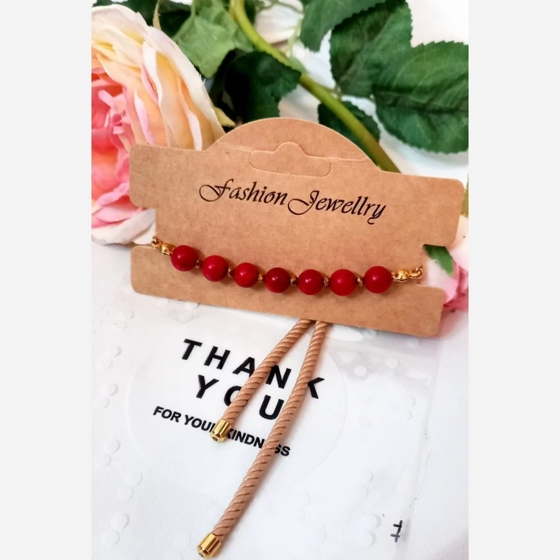 دستبند سنگ طبیعی مرجان با قفل کشویی قابل تنظیم