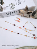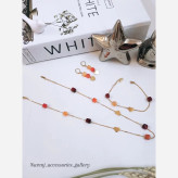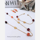 گوشواره عقیق کارنلین طبیعی با تراش مکعبی | سنگ عقیق با طراحی خاص و استیل رنگ ثابت کپی