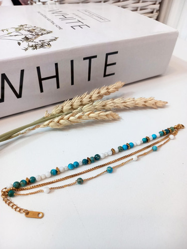 دستبند سنگ فیروزه اصل زنانه چند لاین ظریف; استیل، رنگ ثابت و ضد حساسیت