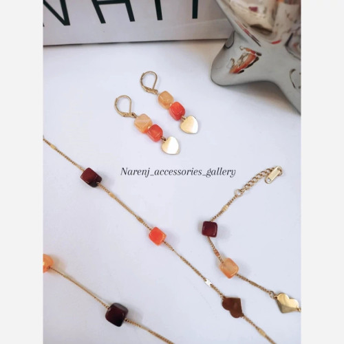 گردنبند و دستبند سنگ طبیعی دلربای اصل + آویز اشکی با تراش خاص از سنگ دلربا