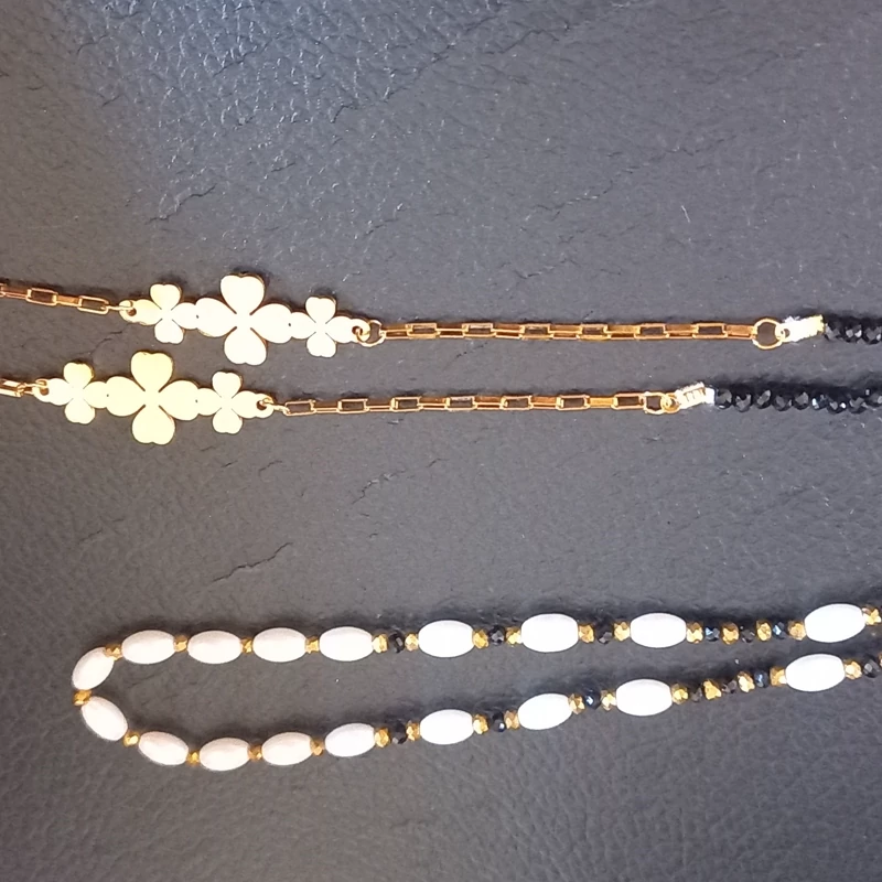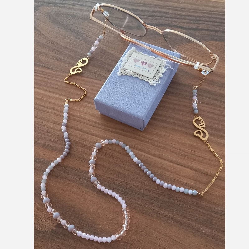 بند عینک زنانه-دخترانه تمام استیل با متریال مروارید و کریستال