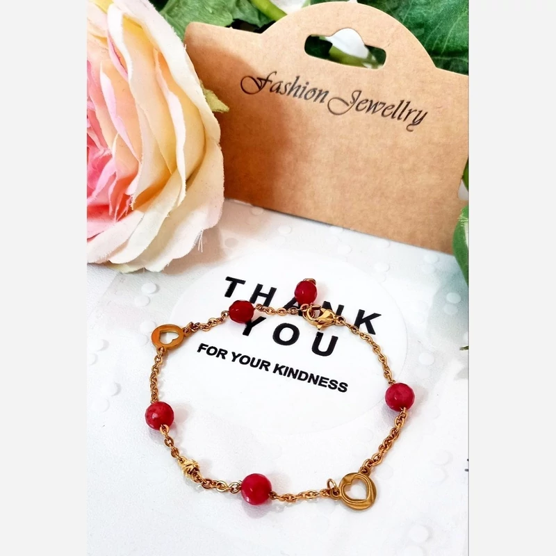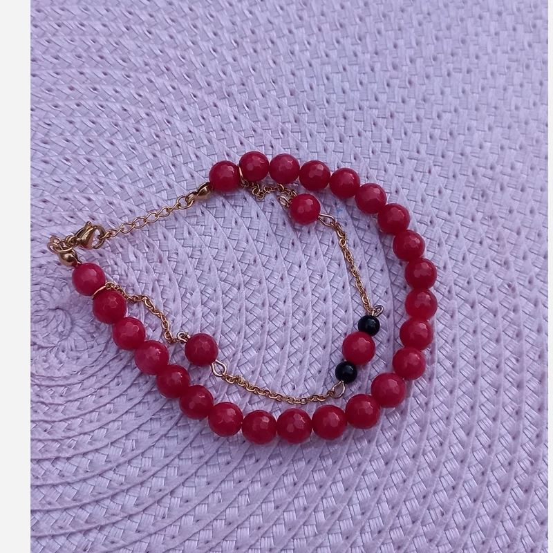 دستبند سنگ جید قرمز دو ردیفه با زنجیر استیل رنگ ثابت ضد حساسیت