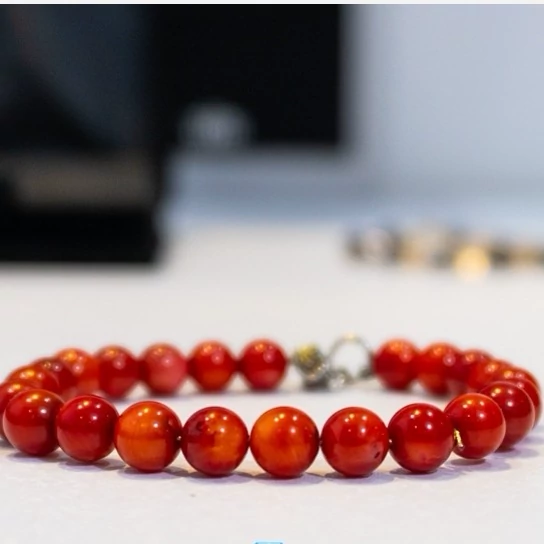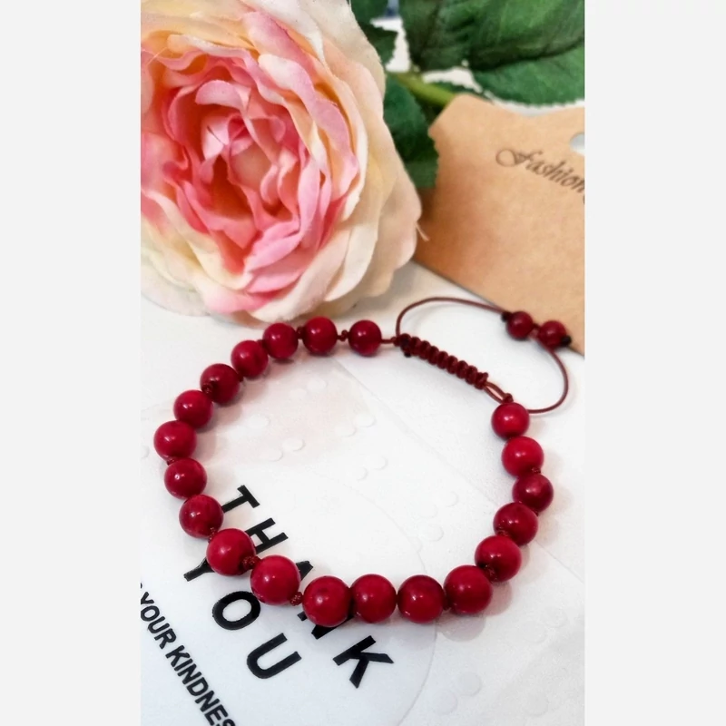 دستبند سنگ زیبای مرجان اصل درجه یک قرمز