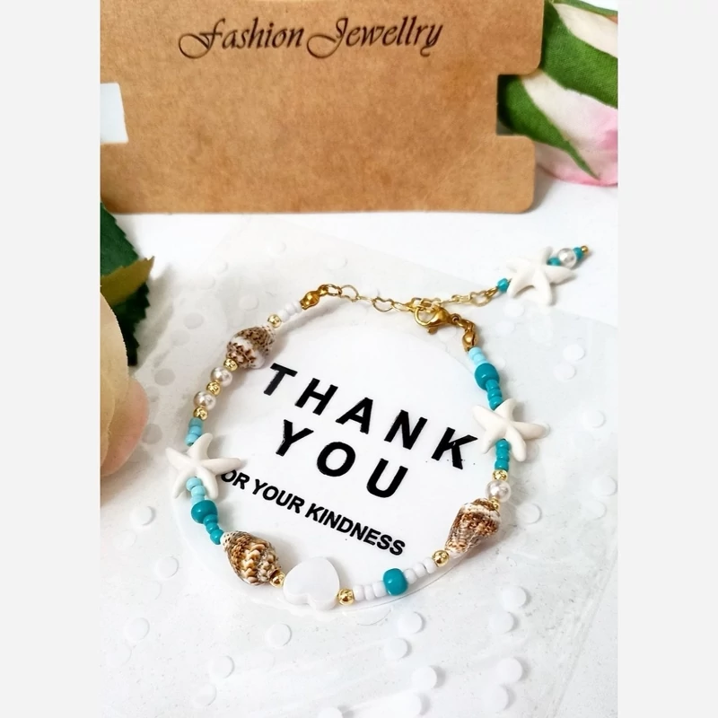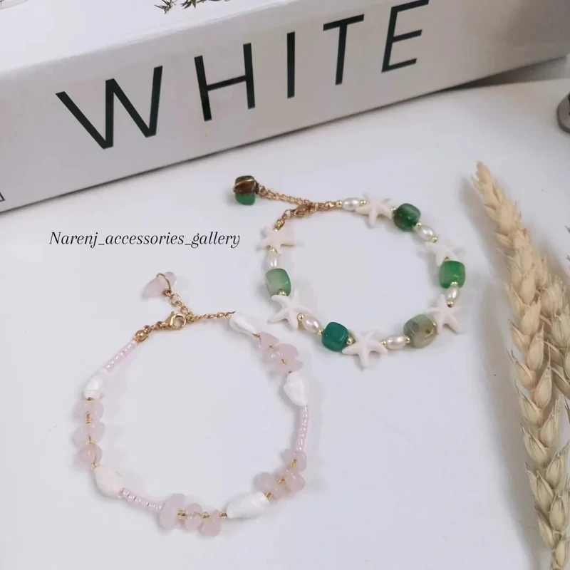 دستبند ساحلی سنگ صدف و صدف طبیعی باکیفیت استیل