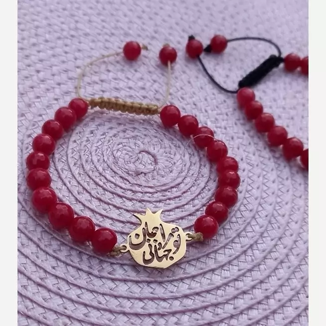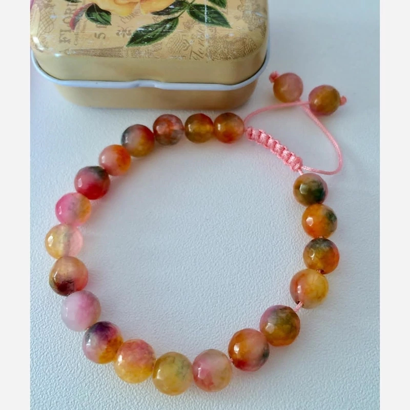 دستبند سنگ طبیعی مرجان با قفل کشویی قابل تنظیم