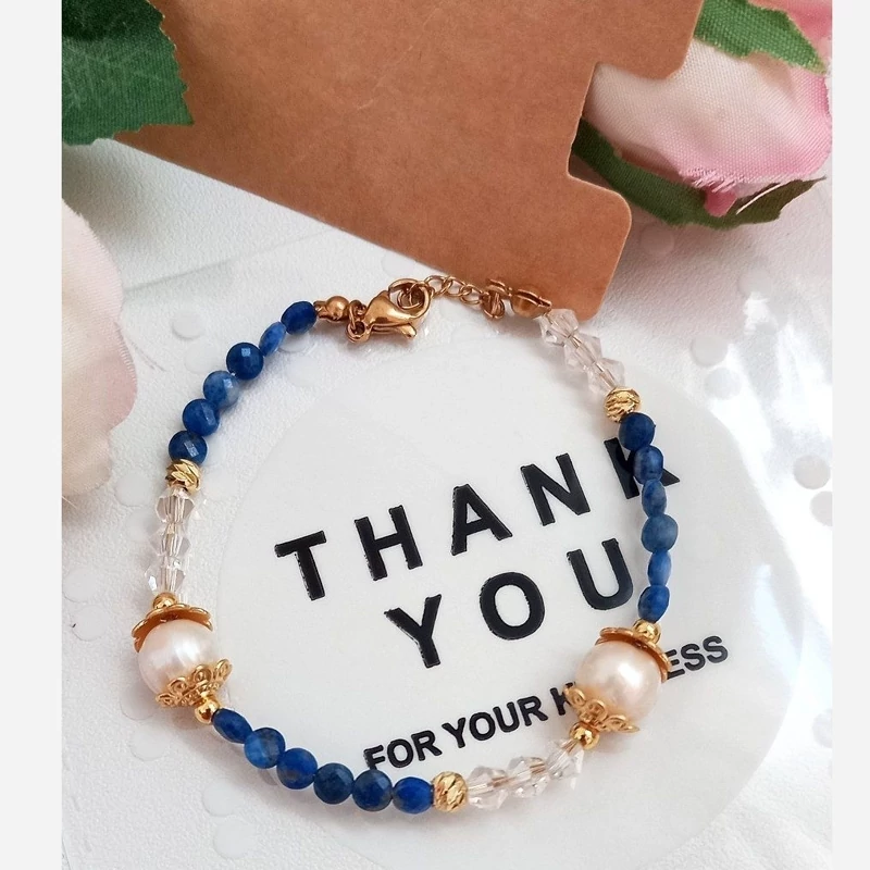 دستبند زیبای سنگ طبیعی لاجورد و مروارید پرورشی طبیعی استیل رنگ ثابت