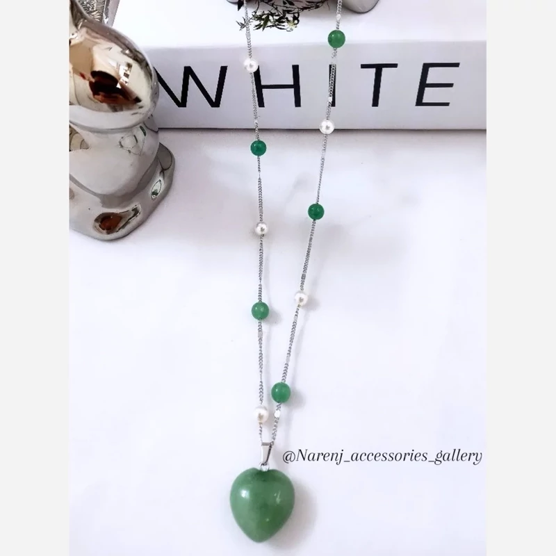 گردنبند سنگ اونتورین اصل و با کیفیت پلاک سنگی قلب اونتورین