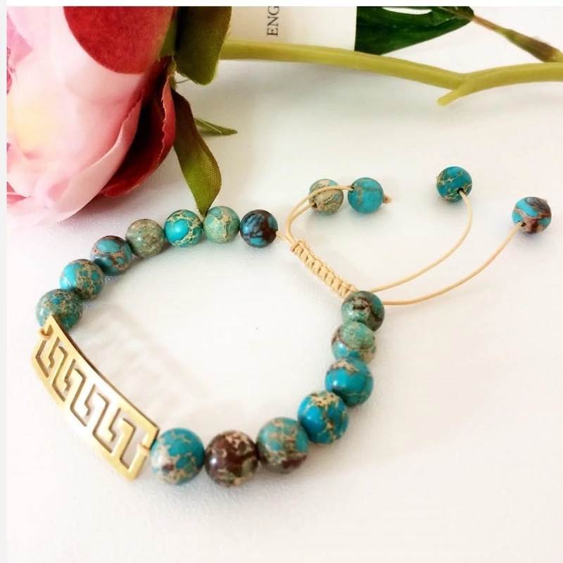 دستبند سنگ اصل جاسپر دریایی و مروارید طبیعی