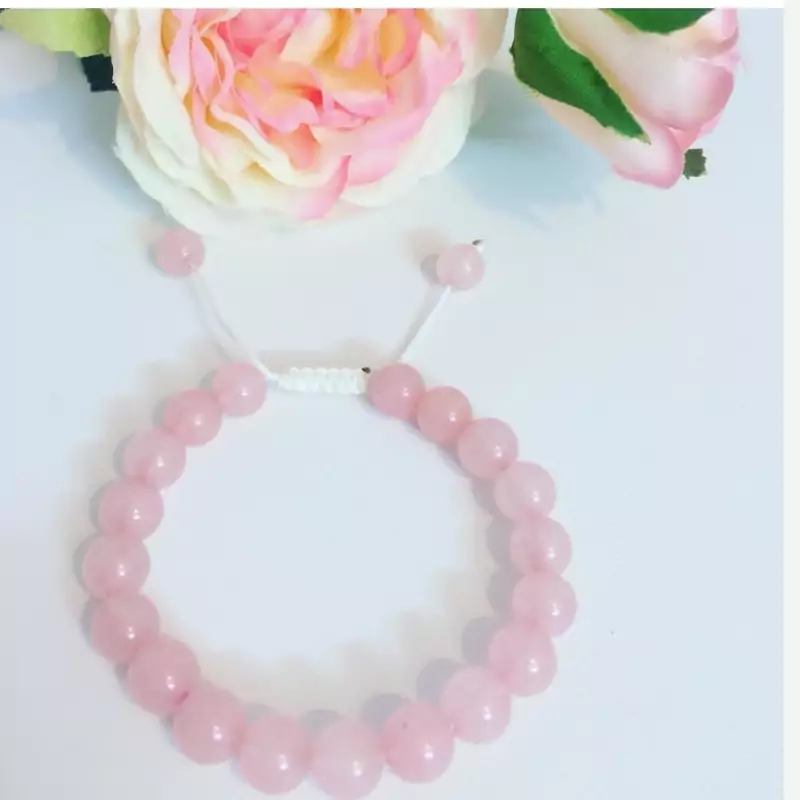 دستبند سنگ اصل کوارتز صورتی سایز 8