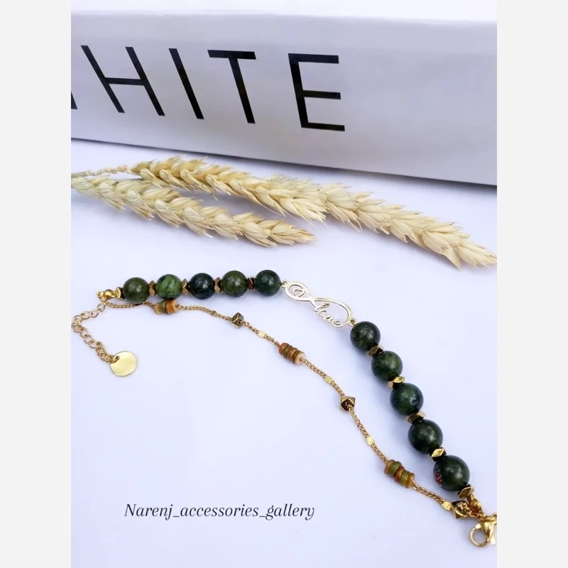 دستبند سنگ جید (اصل) و پلاک استیل ضدحساسیت