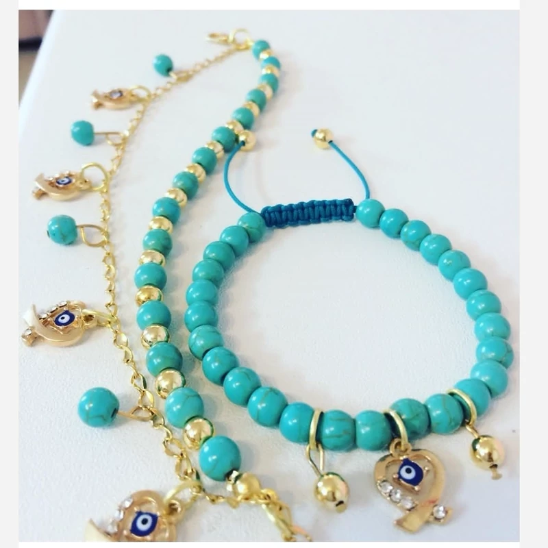 دستبند سنگ فیروزه آفریقایی اصل با پلاک استیل و ضد حساسیت
