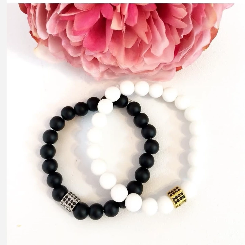 دستبند سنگ اصل اونیکس تراش خورده و پلاک استیل ضد حساسیت